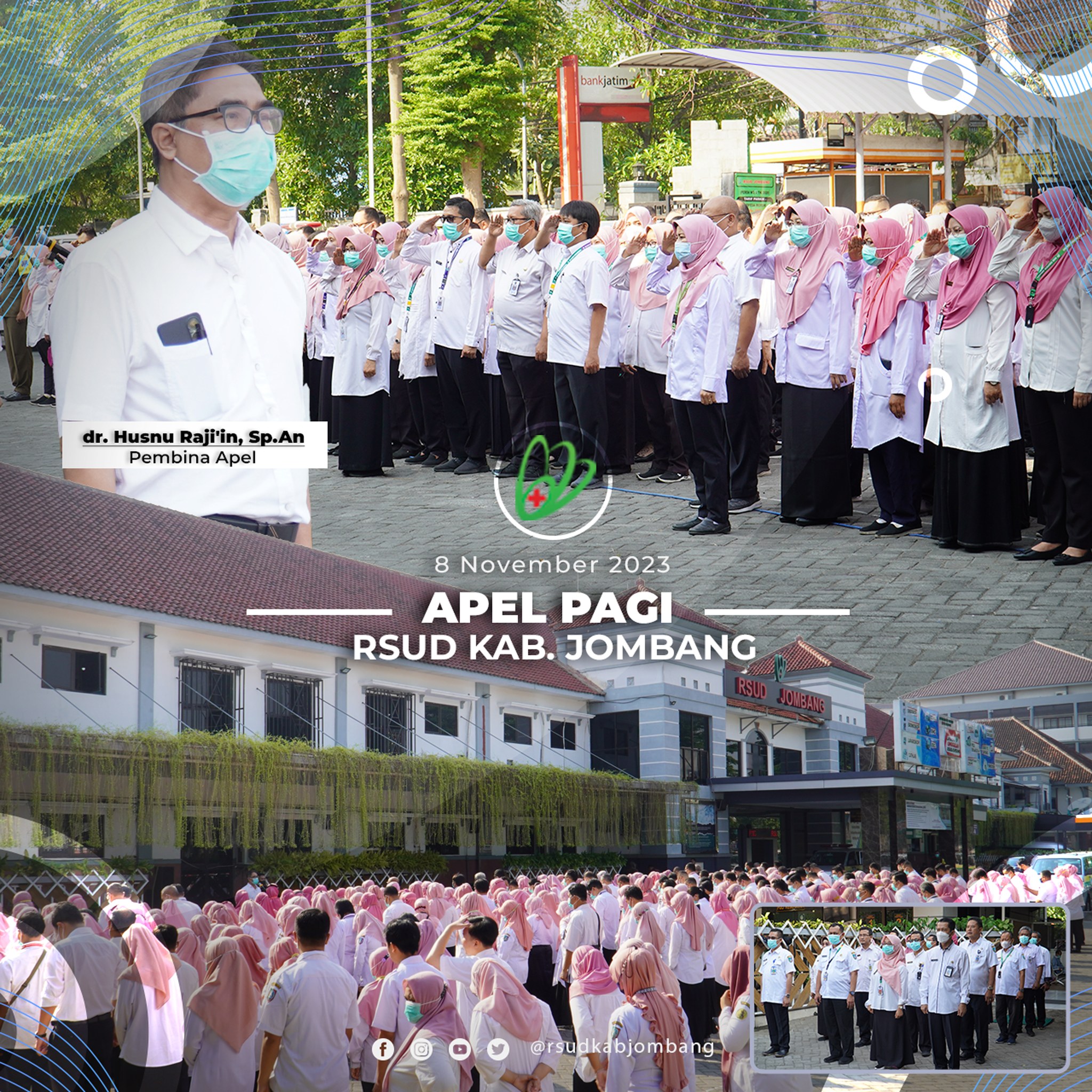 Apel pagi civitas hospitalia RSUD Kabupaten Jombang yang dipimpin oleh dr. Husnu Raji'in, Sp.An di halaman depan RSUD Kab. Jombang, Rabu (8/11/2023).
