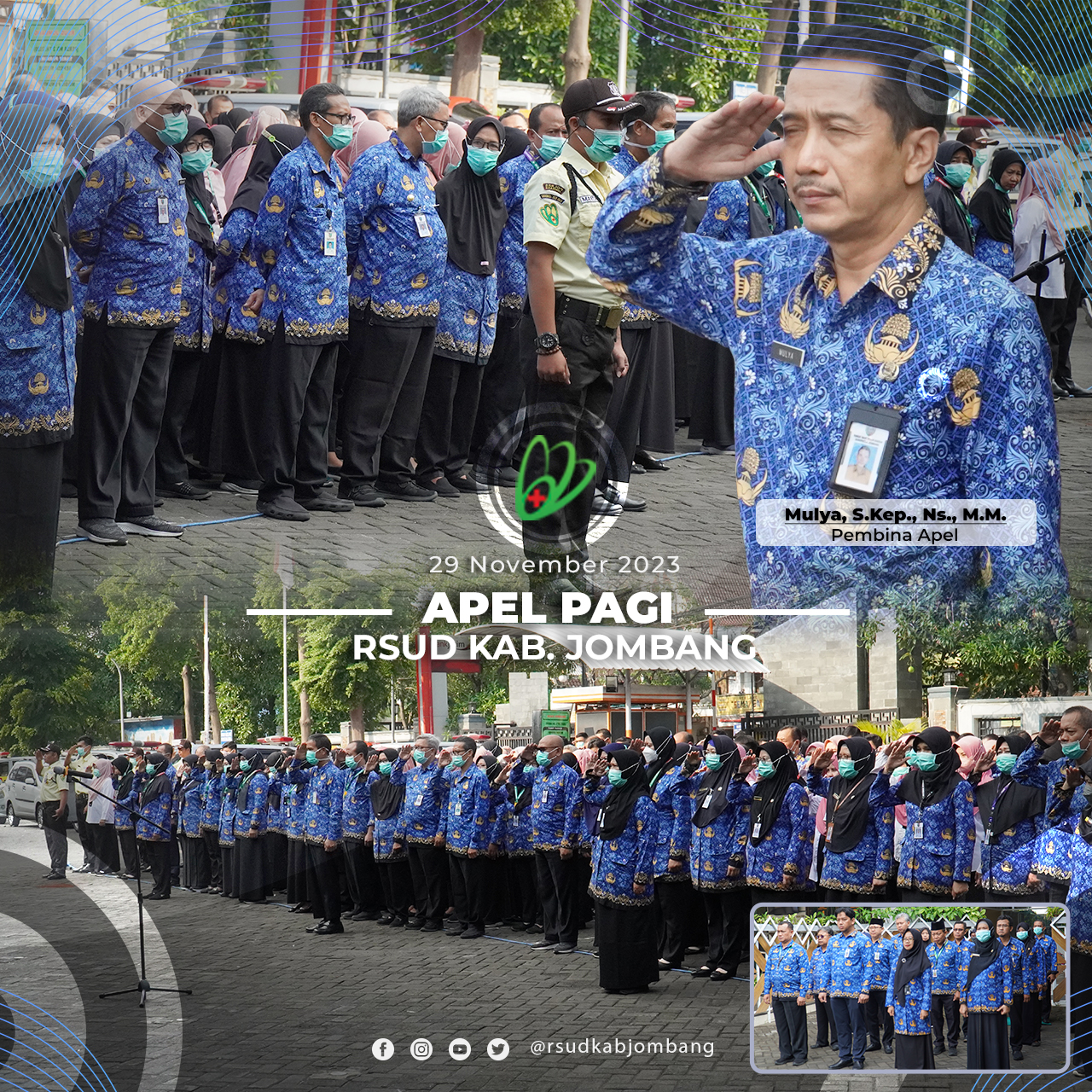 Apel pagi civitas hospitalia RSUD Kabupaten Jombang yang dipimpin oleh Bapak Mulya, S.Kep., Ns., M.M., Wakil Direktur Umum dan Keuangan RSUD Kabupaten Jombang, Rabu (29/11/2023).