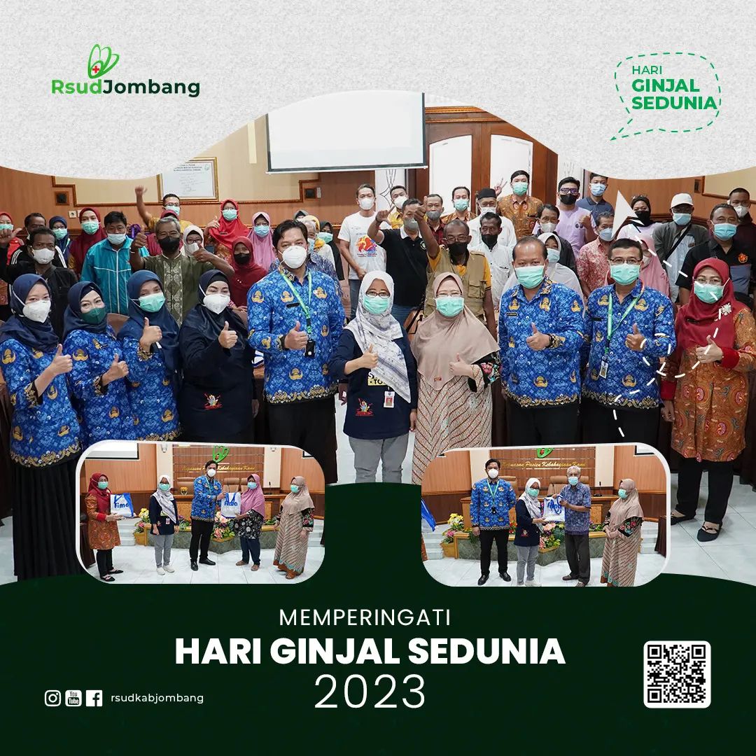 Direktur RSUD Jombang dr Ma’murotus Sa’diyah memberikan cenderamata kepada perwakilan pasien hemodialisa dalam rangka memperingati hari ginjal sedunia (17/3/2023)