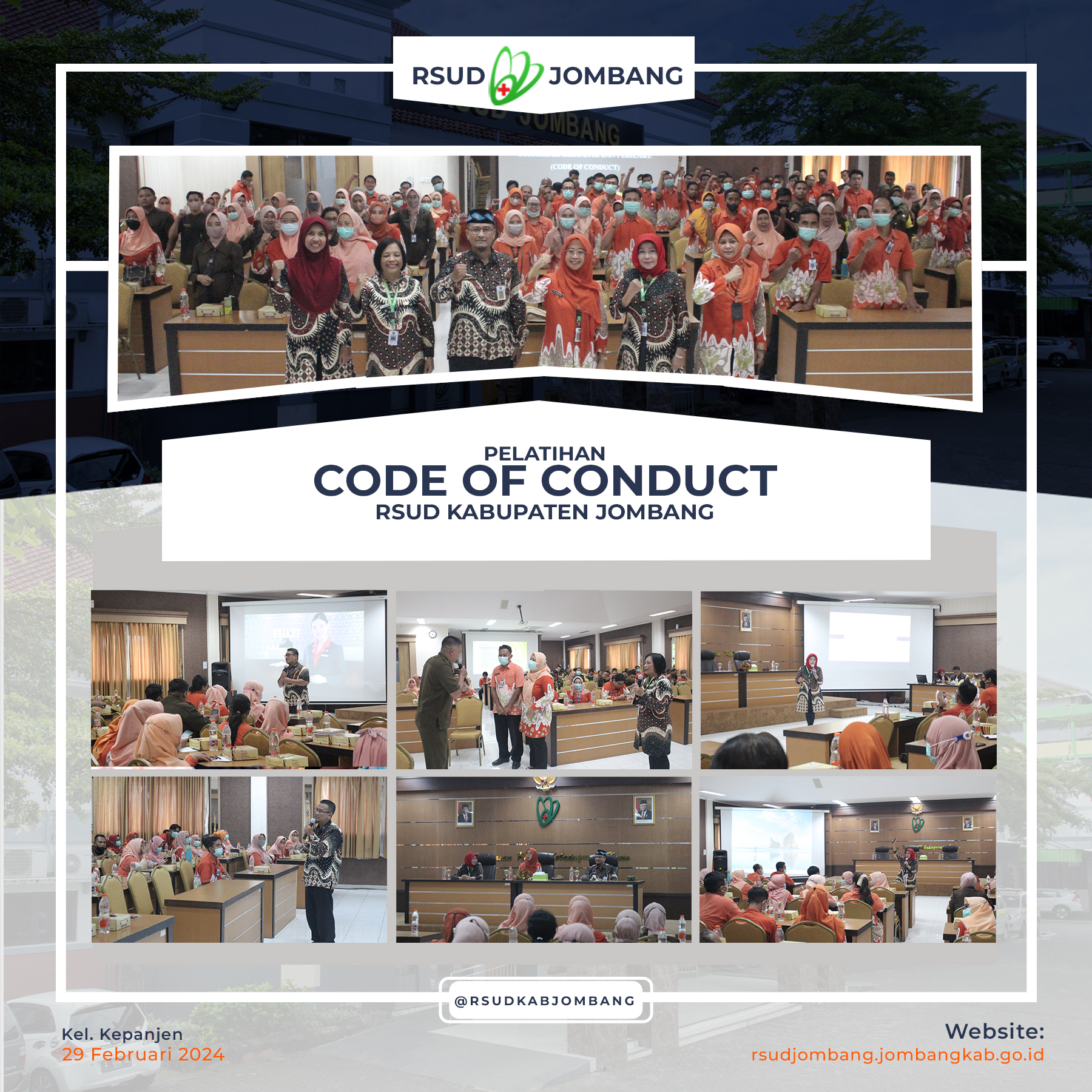 Pembukaan pelatihan Code of Conduct dan pengarahan oleh Direktur RSUD Jombang, Ibu Dr. dr. Ma’murotus Sa’diyah, M.Kes., tentang kewajiban seluruh keluarga besar RSUD Jombang untuk membangun paradigma melayani dan bersikap dalam pelayanan dan terhadap rekan kerja, Kamis (29/2/2024).Pembukaan pelatihan Code of Conduct dan pengarahan oleh Direktur RSUD Jombang, Ibu Dr. dr. Ma’murotus Sa’diyah, M.Kes., tentang kewajiban seluruh keluarga besar RSUD Jombang untuk membangun paradigma melayani dan bersikap dalam pelayanan dan terhadap rekan kerja, Kamis (29/2/2024).