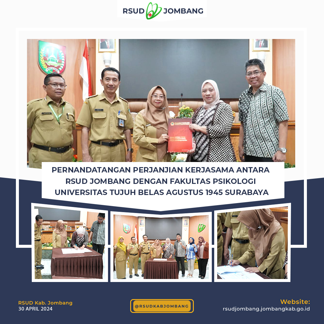 Pernandatangan perjanjian kerjasama antara RSUD Jombang dengan Fakultas Psikologi Universitas Tujuh Belas Agustus 1945 Surabaya