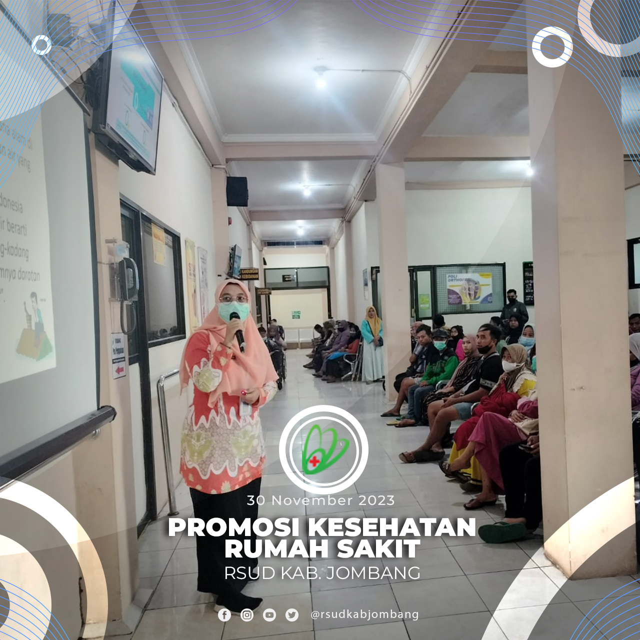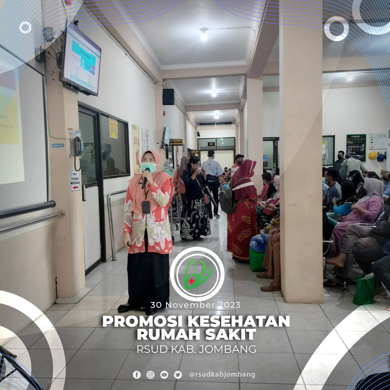 Pelaksanaan kegiatan promosi kesehatan rumah sakit (PKRS) dengan narasumber dari Unit K3RS (Kesehatan dan Keselamatan Kerja Rumah Sakit), dan Tim PPI (Pencegahan dan Pengendalian Infeksi) RSUD Kabupaten Jombang di ruang tunggu rawat jalan, Kamis (30/11/2023).Pelaksanaan kegiatan promosi kesehatan rumah sakit (PKRS) dengan narasumber dari Unit K3RS (Kesehatan dan Keselamatan Kerja Rumah Sakit), dan Tim PPI (Pencegahan dan Pengendalian Infeksi) RSUD Kabupaten Jombang di ruang tunggu rawat jalan, Kamis (30/11/2023).