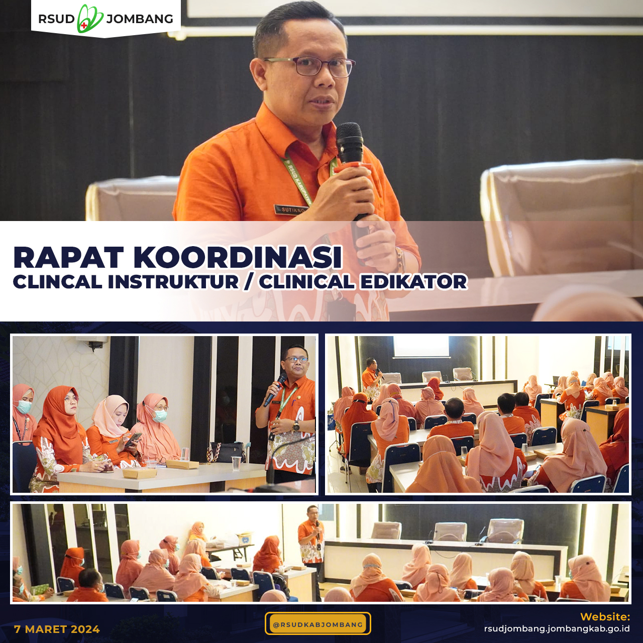 Rapat Koordinasi Clincal Instruktur / Clinical Edikator oleh Sekretaris Satkordiklat RSUD Jombang, Bapak Sutikno, S.Kep.Ns., M.Kes, Kamis (7/3/2024).