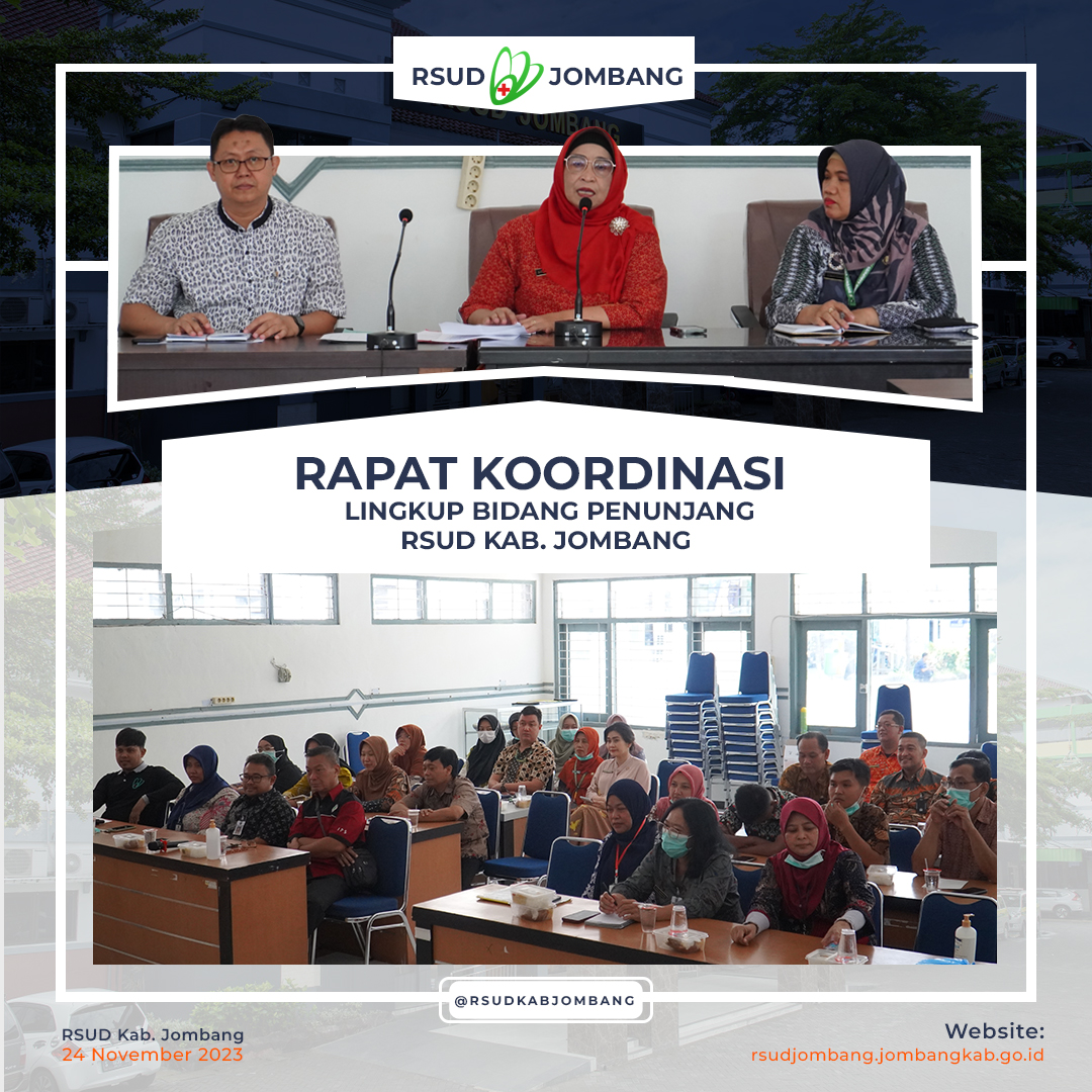 Rapat Koordinasi Lingkup Bidang Penunjang yang dipimpin oleh Ibu Siti Munawaroh SKep Ns MM Kepala Bidang Penunjang Medik dan Non Medik RSUD Kabupaten Jombang di ruang pertemuan Mini Lab, Jumat (24/11/2023).