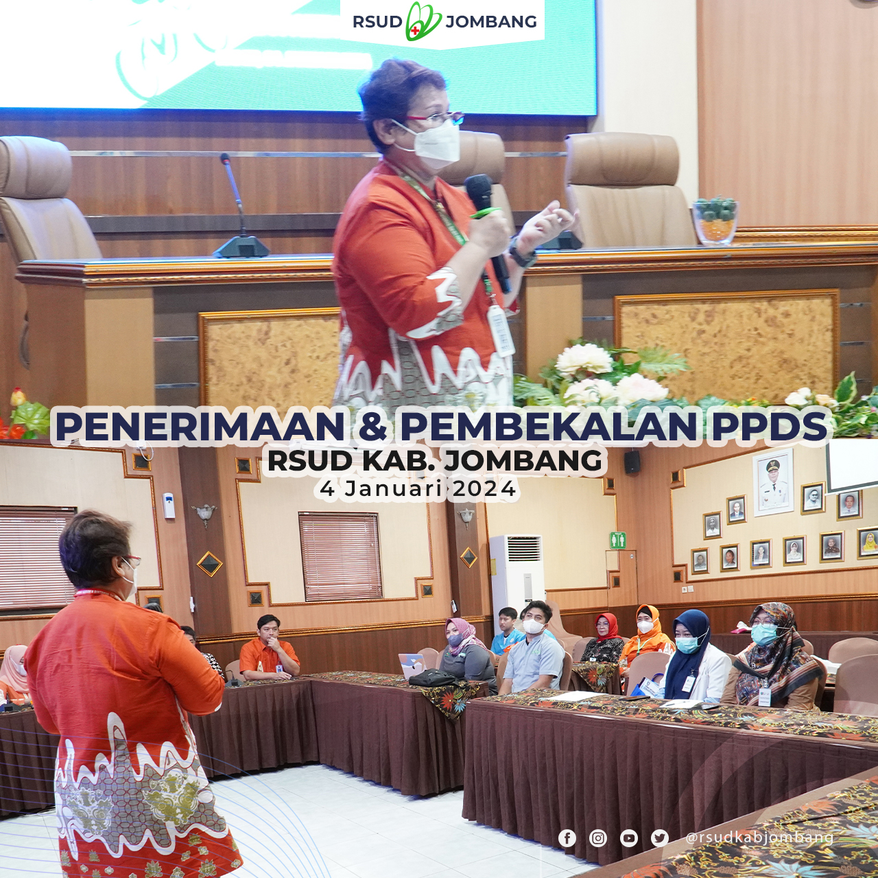 Penerimaan dan pembekalan PPDS (Program Pendidikan Dokter Spesialis) di ruang pertemuan Bung Hatta RSUD Kabupaten Jombang, Kamis (4/1/2024).