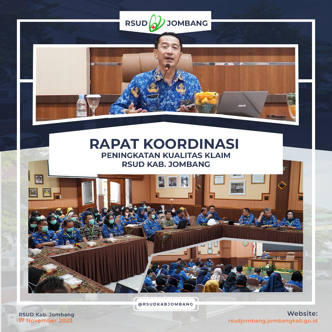 Rapat Koordinasi Peningkatan Kualitas Klaim yang di pimpin oleh wakil direktur RSUD Kabupaten Jombang, Bapak Mulya, S Kep Ns, MM di ruang pertemuan Bung Hatta, Jumat (17/11/2023).