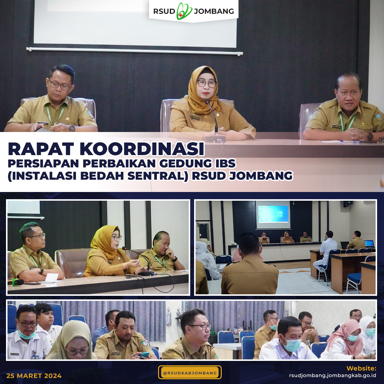 Rapat Koordinasi Persiapan Perbaikan Gedung IBS yang dipimpin oleh Kepala Bidang Penunjang Medik dan Non Medik RSUD Kabupaten Jombang, Ibu Siti Munawaroh, S. Kep. Ns, M.M, di Ruang Pertemuan Minilab, Senin (25/3/2024)