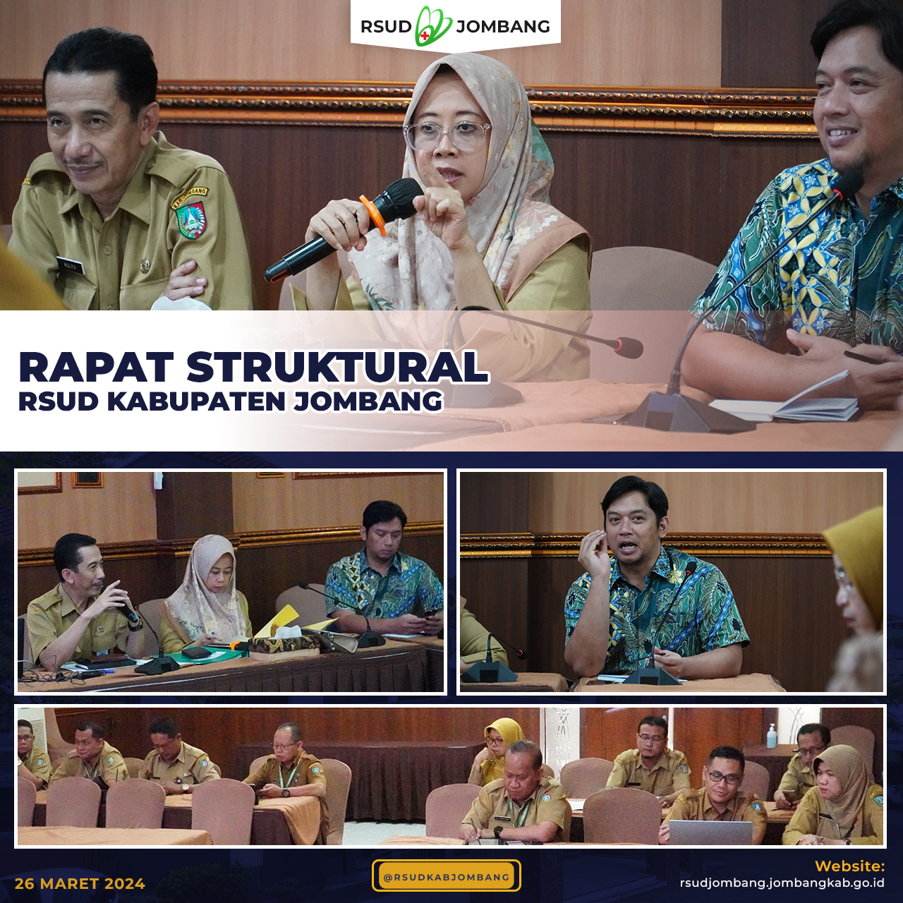 Rapat Struktural yang dipimpin oleh Direktur RSUD Jombang, Ibu Dr dr Ma’murotus Sa’diyah M Kes di ruang pertemuan Bung Hatta, Selasa (26/3/2024).
