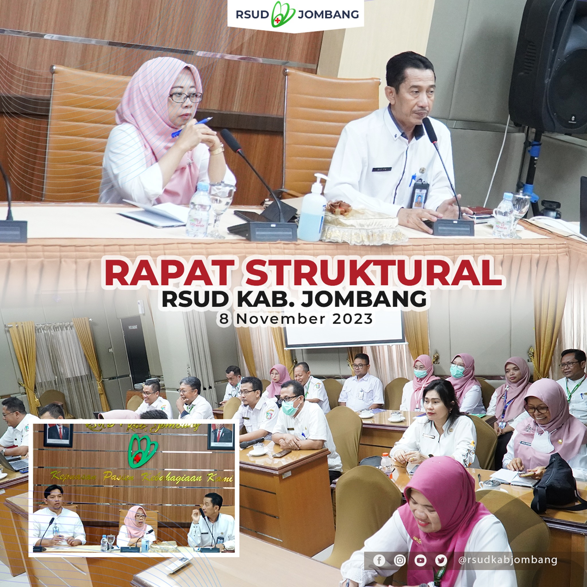 Rapat Struktural yang dipimpin oleh Direktur RSUD Kabupaten Jombang, Ibu Dr. dr. Ma’murotus Sa’diyah, M.Kes, dengan pembahasan terkait tindak lanjut hasil rekredensial BPJS Kesehatan di ruang Soedijoto, Rabu (8/11/2023).