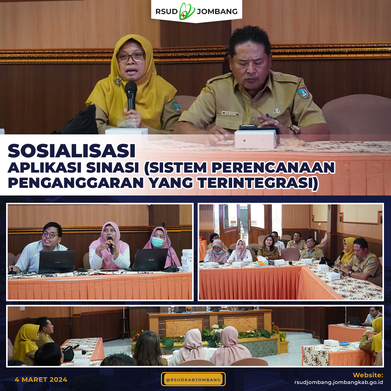 Sosialisasi Aplikasi SINASI (Sistemn Perencanaan Penganggaran yang Terintegrasi) yang dipimpin oleh Bapak Kusairi, S.Kep.Ns., M.M., Kepala Bagian Perencanaan Program RSUD Kabupaten Jombang, Senin (04/03/2024).