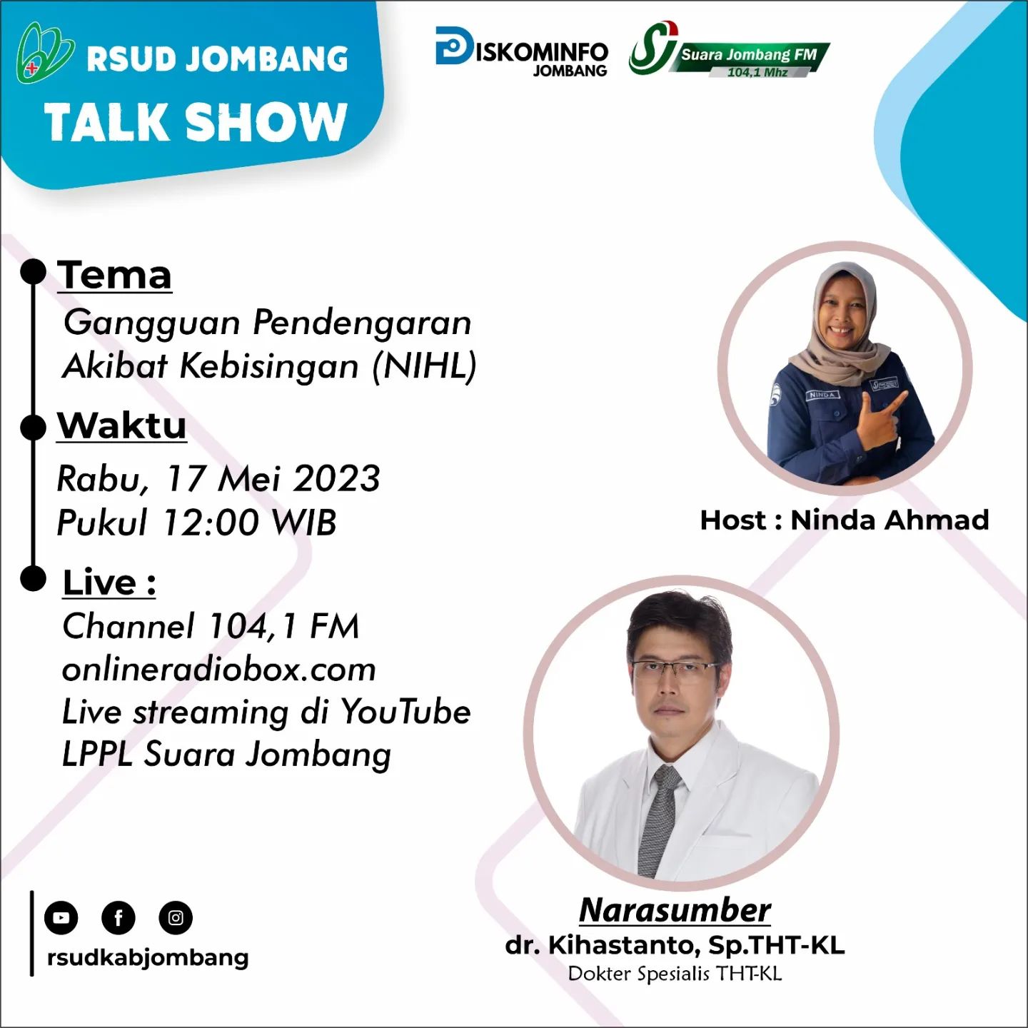 Talkshow Radio dengan tema Gangguan Pendengaran Akibat Kebisingan oleh narasumber dr. Kihastanto Sp THT-KL dokter spesialis Telinga hidung tenggorokan kepala Leher RSUD kabupaten jombang (17/5/2023)