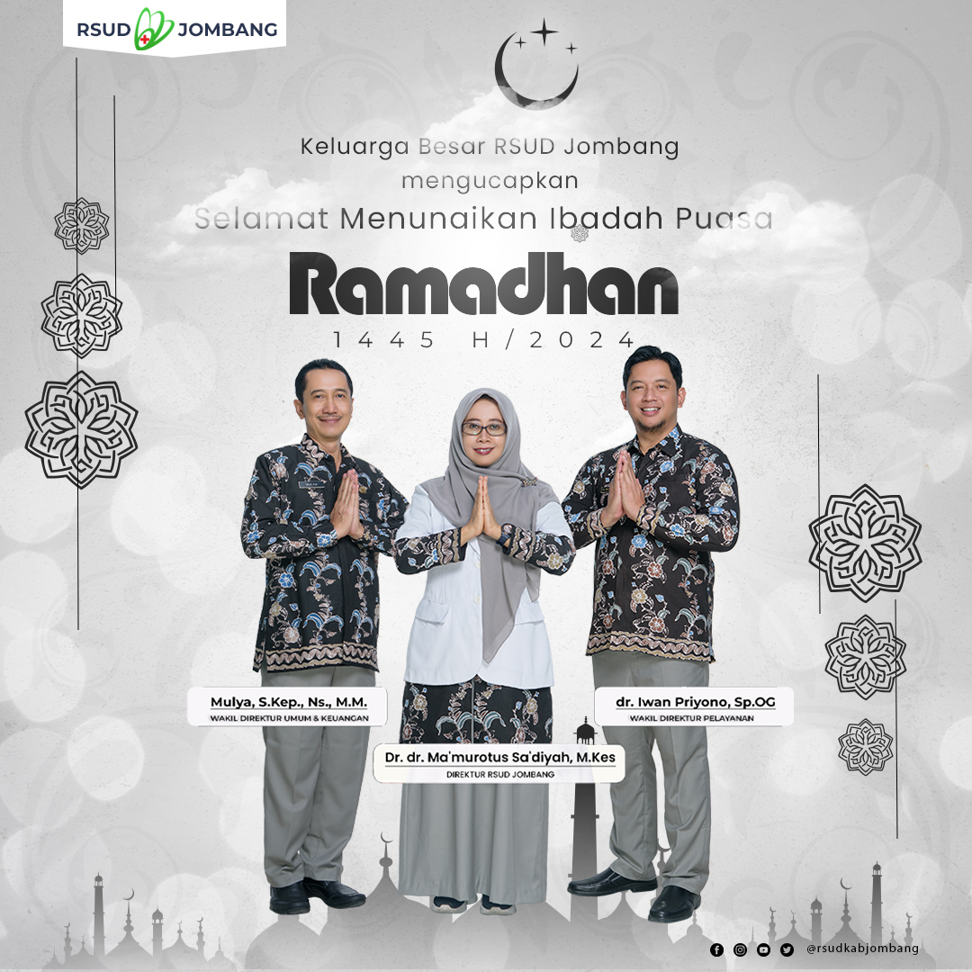 Keluarga besar RSUD Jombang mengucapkan selamat menunaikan ibadah puasa Ramadhan 1445 H/2024 M