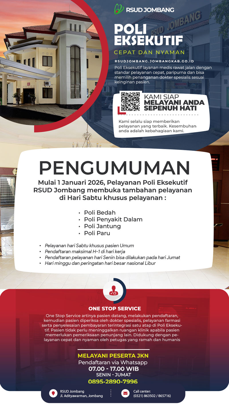 Poli Eksekutif RSUD Kab. Jombang, melayani pasien dengan kepesertaan JKN (Jaminan Kesehatan Nasional)